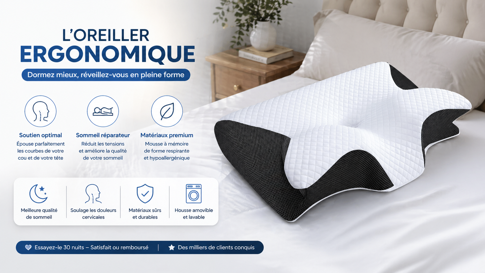 Découvrez le confort ultime avec notre oreiller ergonomique conçu pour soulager les douleurs cervicales et améliorer la qualité de votre sommeil.